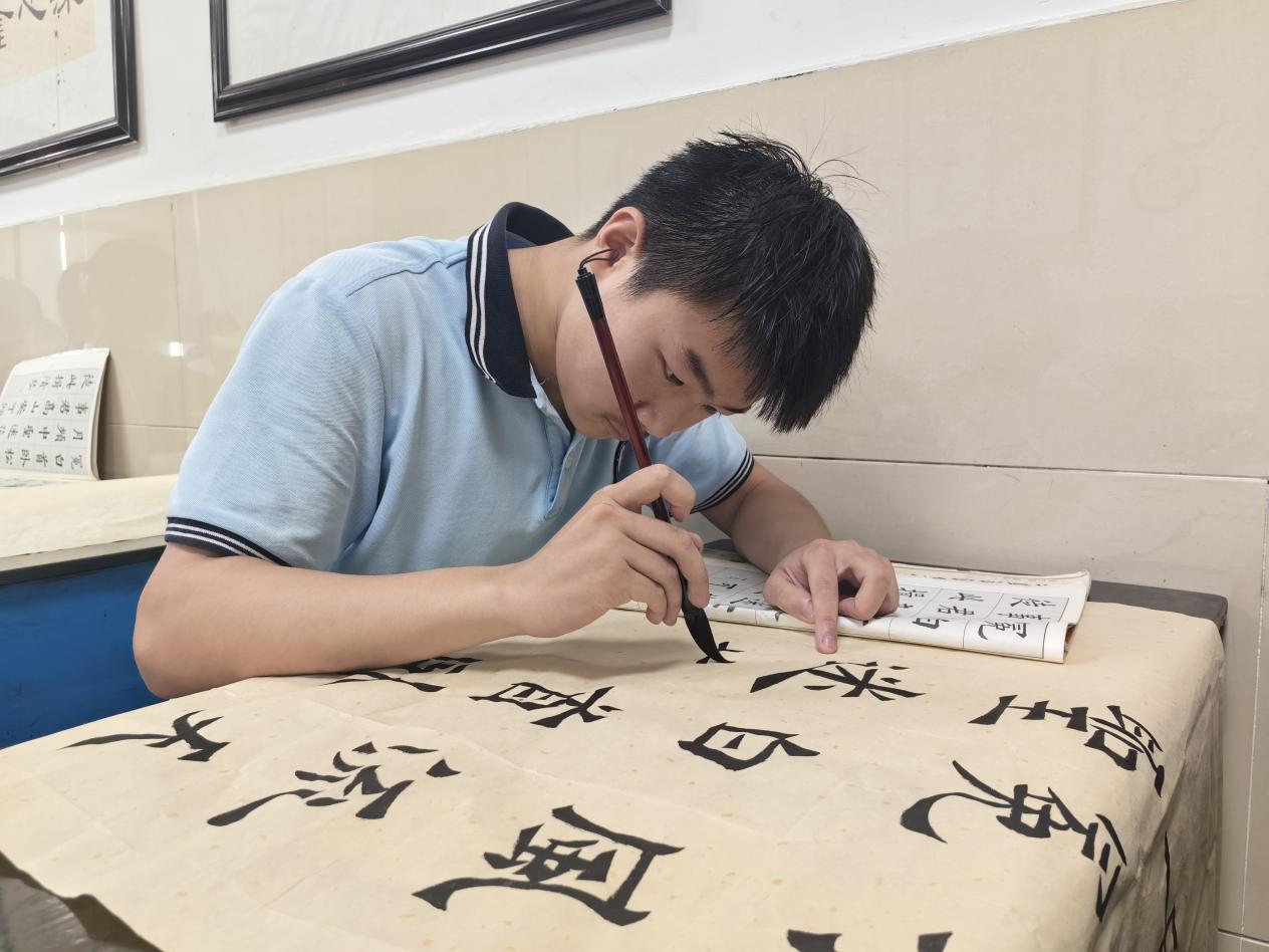 学生孙硕说:“我觉得学习毛笔字是我的兴趣,学习毛笔字对我有很多的帮助,比如在暑假里它可以充实我的生活,而且它还可以提高我的审美、陶冶我的情操。”