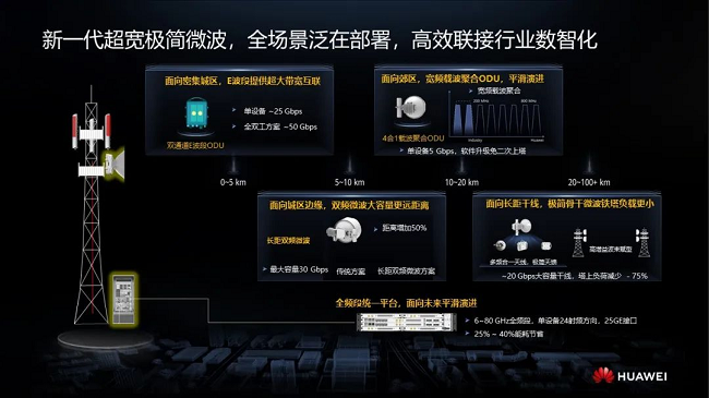 从2005年自研第一代多业务IP微波上市,到2016年第二代5G微波,再到如今第三代平台超宽极简微波,华为始终走在微波产业发展的前列。2023年,业界首个25G大容量微波、首个全频段统一平台微波诞生;2024年,极简架构骨干微波问世;2025年,业界首个50G全双工微波方案和创新“天王星”多点汇聚方案推出。这些创新成果不断提升微波传输性能,满足广电及千行百业数智转型对高效联接的需求。